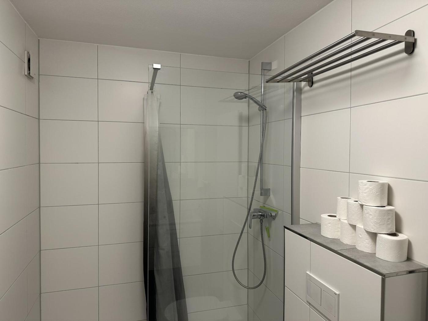 Vierbettzimmer mit eigenem Bad. The quadruple room includes a private bathroom fitted with a shower and a hairdryer. The quadruple room features a seating area, a wardrobe, a safe deposit box, an electric kettle, as well as a flat-screen TV with cable channels. The unit has 3 beds.