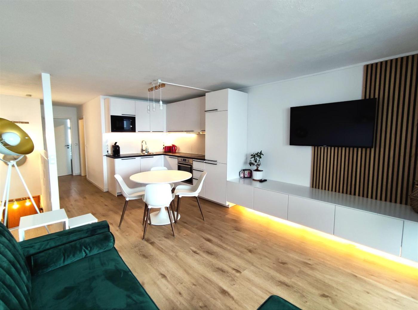 Die Unterkunft 2-Zimmer Wohnung, Pools, Sauna und Balkon bietet ihren Gästen einen Balkon, Bergblick, einen Sitzbereich, einen Flachbild-TV, eine voll ausgestattete Küchenzeile mit einem Kühlschrank und einem Geschirrspüler sowie ein eigenes Badezimmer mit einer Dusche und kostenlosen Pflegeprodukten. Ein voll ausgestattetes eigenes Badezimmer mit einem Whirlpool und einem Haartrockner ist vorhanden.