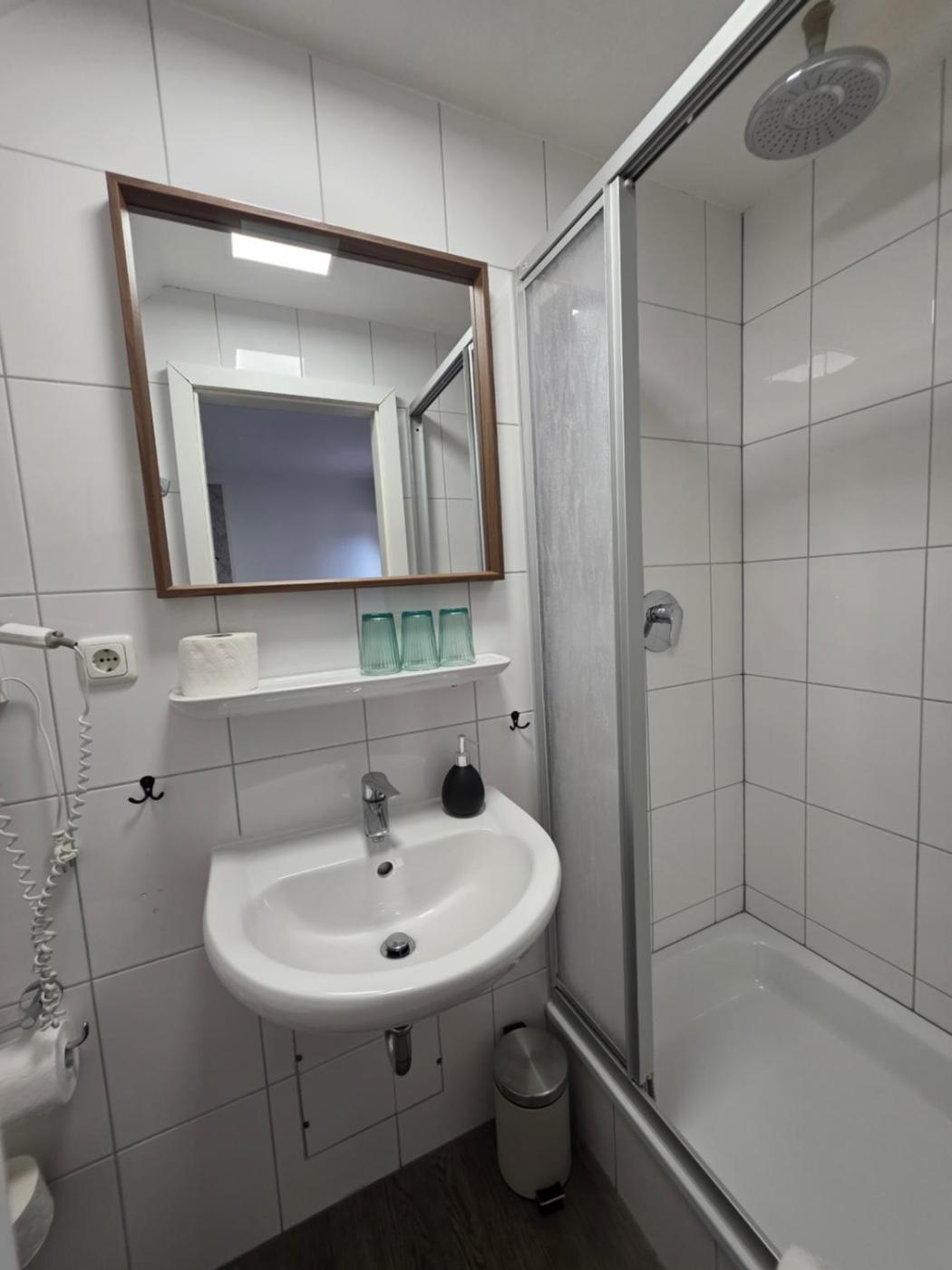 Vierbettzimmer. The quadruple room features air conditioning, a wardrobe, as well as a private bathroom boasting a shower and a hairdryer. This quadruple room offers heating and a flat-screen TV. The unit has 3 beds.