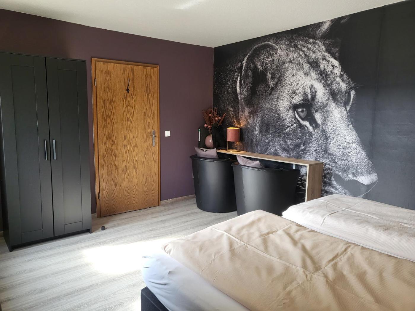 Doppelzimmer. The double room features a tea and coffee maker, a wardrobe, as well as a private bathroom boasting a shower and a hairdryer. This double room has parquet floors, heating, a flat-screen TV with satellite channels and a quiet street view. The unit has 1 bed. ;