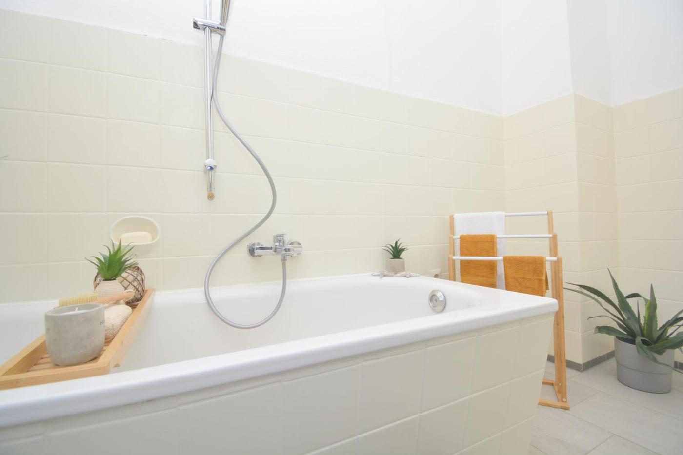 Apartment mit 3 Schlafzimmern. The apartment has 3 bedrooms, 1 bathroom and a kitchen. In the kitchen, guests will find a stovetop, a refrigerator, a dishwasher and kitchenware. The spacious apartment features a flat-screen TV, a washing machine, a tea and coffee maker, tumble dryer as well as garden views. The unit has 6 beds.