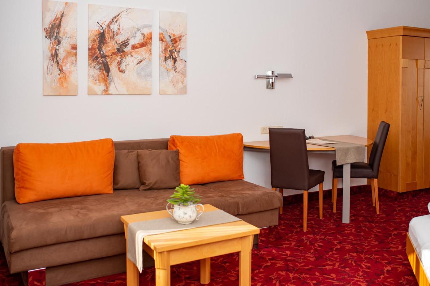 Familienstudio. The spacious family room offers a tea and coffee maker, a dining area, as well as a private bathroom boasting a shower and a hairdryer. In the well-equipped kitchen, guests will find a stovetop, a refrigerator, a dishwasher and kitchenware. The family room is fitted with a flat-screen TV, a wardrobe, a carpeted floor, as well as heating. The unit has 3 beds.