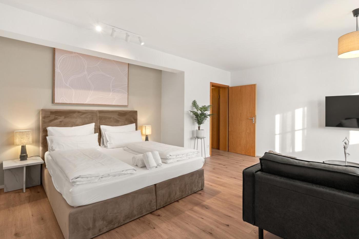 Apartment mit 1 Schlafzimmer. The apartments kitchen is available for cooking and storing food. The apartment has a flat-screen TV, air conditioning, a washing machine, as well as heating. The unit has 1 bed.