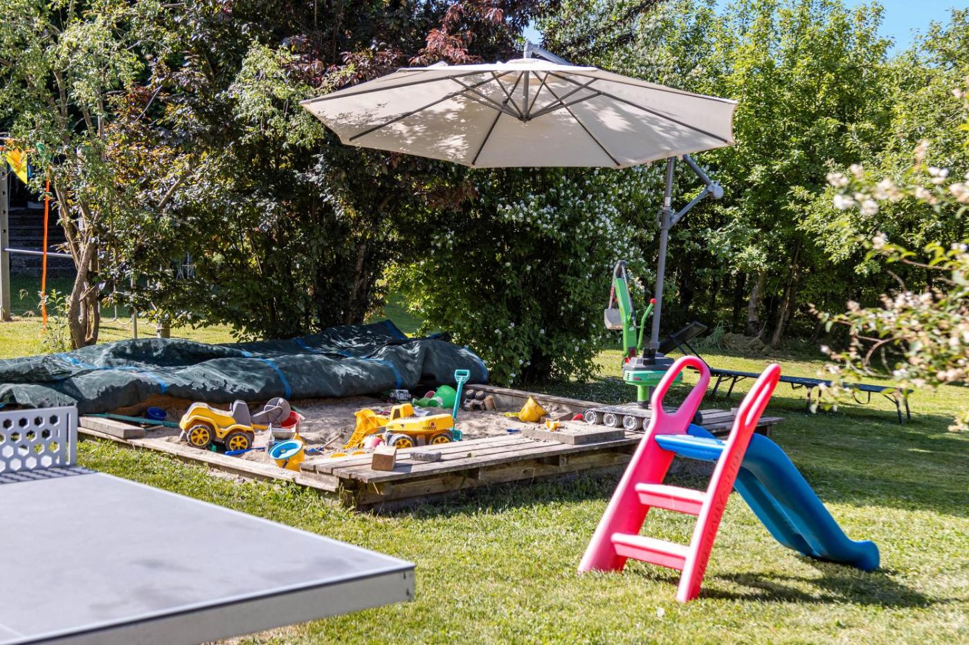 Apartment mit 3 Schlafzimmern und Bergblick. Boasting a private entrance, this spacious apartment also features 3 separate bedrooms and 1 bathroom with a shower and a hairdryer. The fully equipped kitchen has a dishwasher, kitchenware, an oven and a toaster. Featuring a terrace with garden views, this apartment also features a washing machine and a TV with satellite channels. The unit has 6 beds.