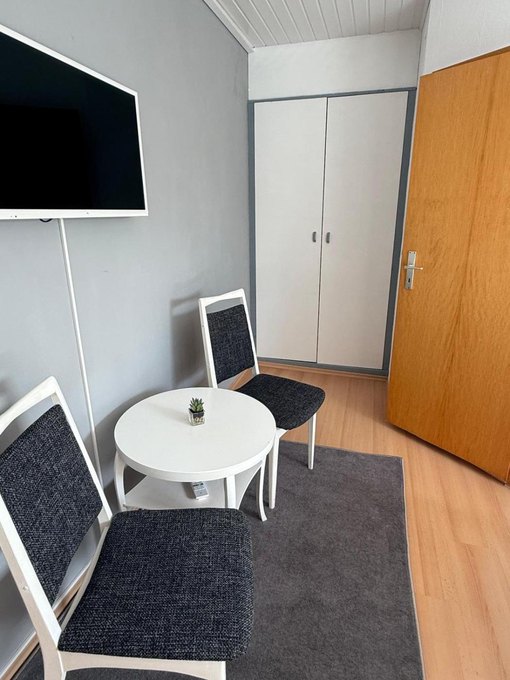 Doppelzimmer mit eigenem Bad. The double room offers heating, as well as a private bathroom boasting a shower. The double room has parquet floors, a seating area with a flat-screen TV, a tea and coffee maker, a wardrobe as well as a quiet street view. The unit has 1 bed. ;