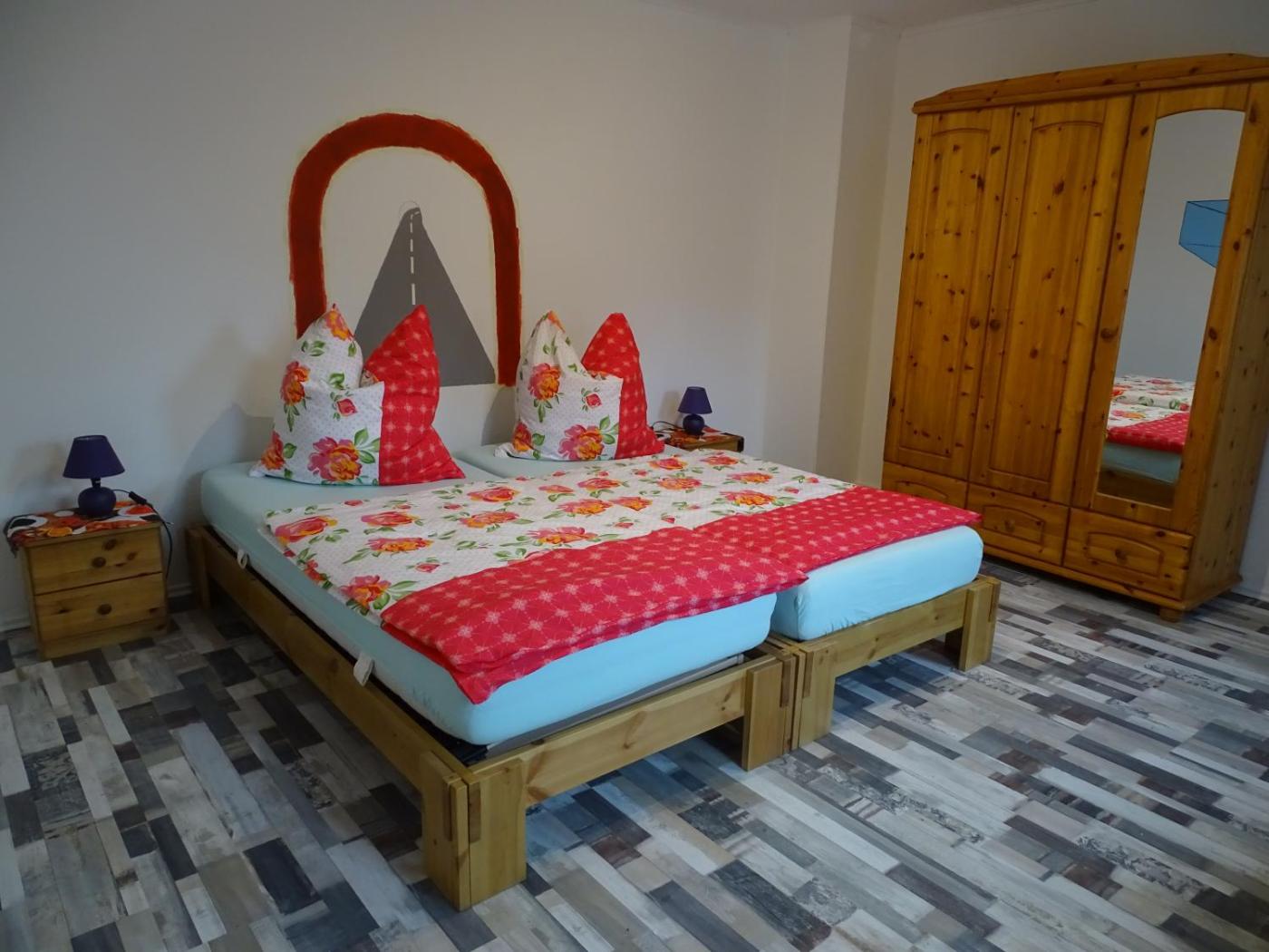 Apartment mit 2 Schlafzimmern. This spacious apartment includes 1 living room, 2 separate bedrooms and 1 bathroom with a shower and free toiletries. In the kitchen, guests will find a stovetop, a refrigerator, kitchenware and an oven. Boasting a terrace with garden views, this apartment also offers a private entrance and a flat-screen TV with cable channels. The unit has 4 beds.