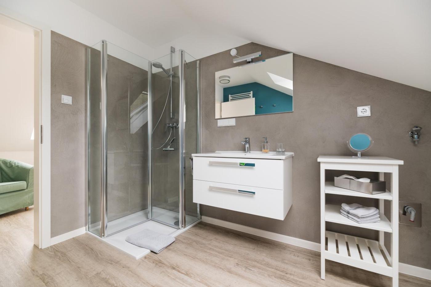 Apartment mit 2 Schlafzimmern. Boasting a private entrance, this apartment also includes 2 bedrooms, a seating area and 1 bathroom with a shower and a hairdryer. The well-equipped kitchenette has a stovetop, a refrigerator, a dishwasher and kitchenware. Featuring a terrace with garden views, this apartment also offers a tea and coffee maker and a flat-screen TV. The unit has 2 beds.