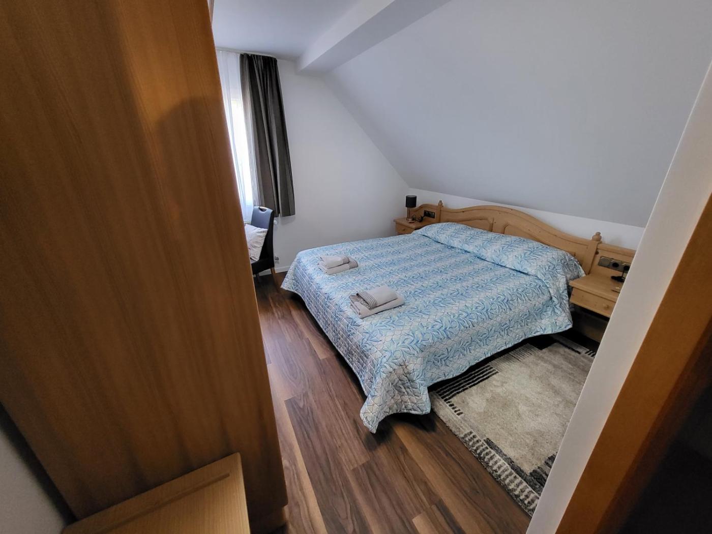 Doppel-Zweibettzimmer mit eigenem Bad. Providing free toiletries, this twindouble room includes a private bathroom with a shower and a hairdryer. In the fully equipped kitchen, guests will find a stovetop, kitchenware, an oven and a toaster. The twindouble room provides a tea and coffee maker, a dining area, a wardrobe, parquet floors, as well as a flat-screen TV with satellite channels. The unit offers 1 bed. ;